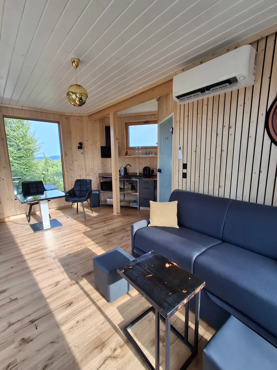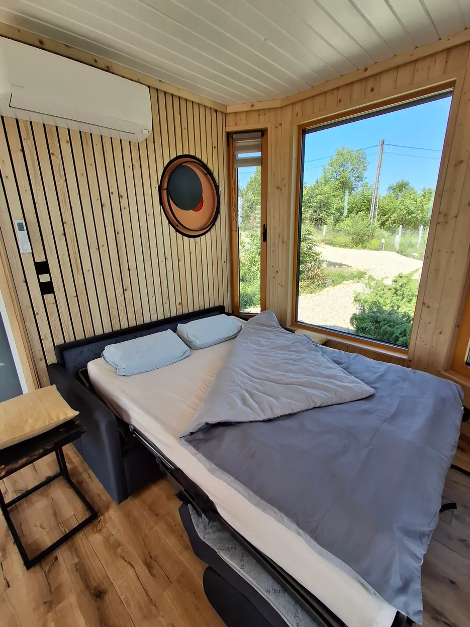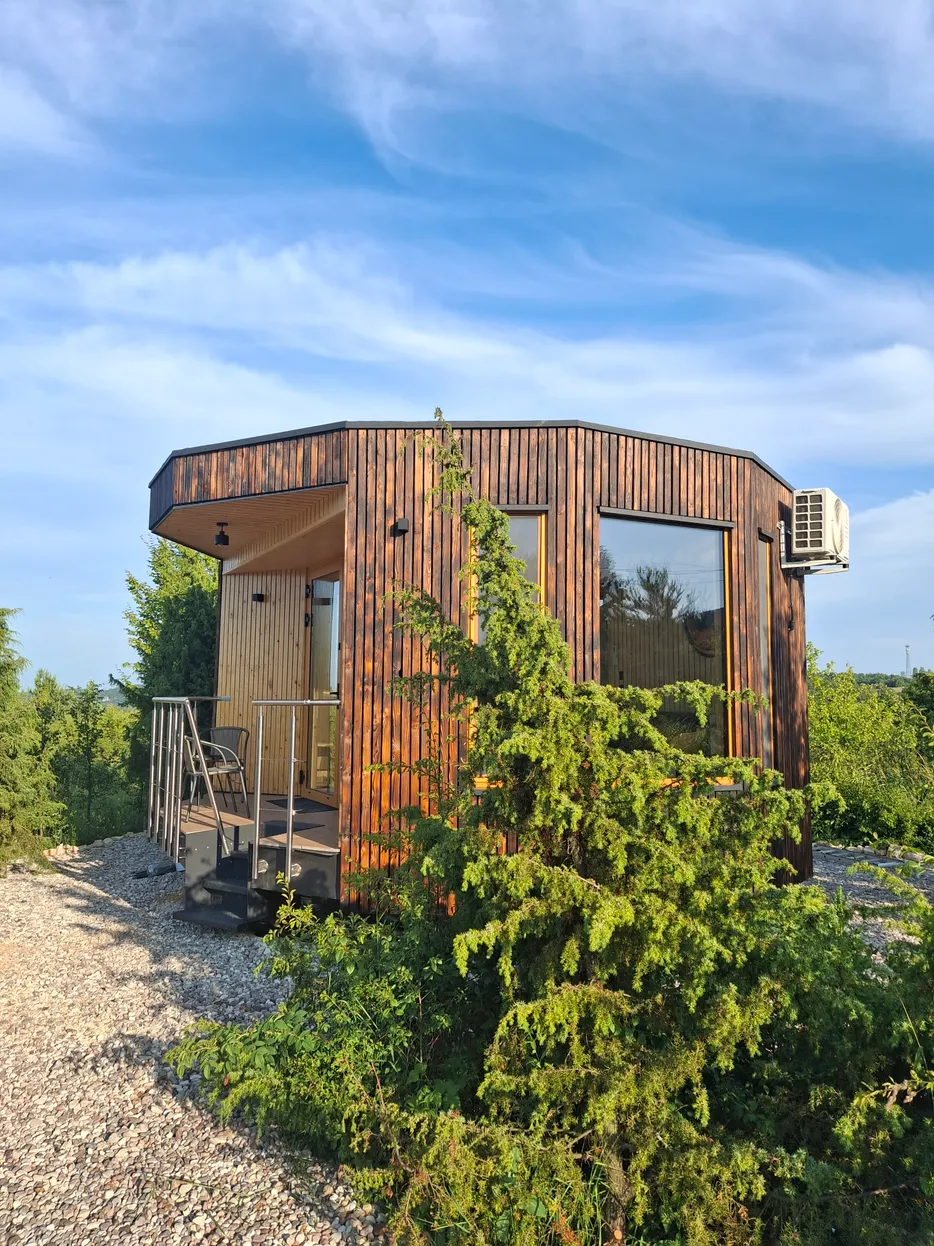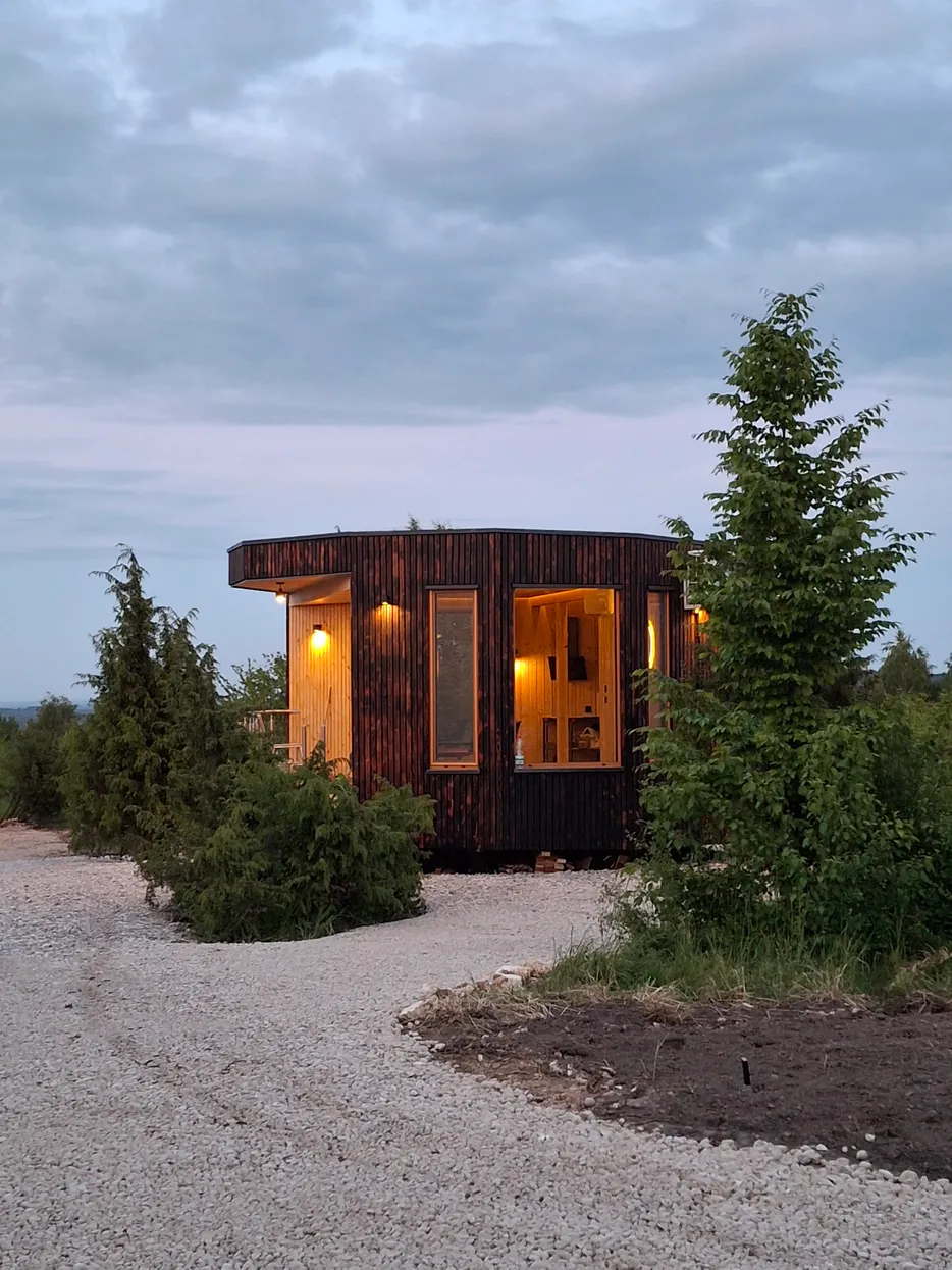 Zbudowaliśmy ten domek dla siebie. Z potrzeby ciszy, światła i bycia bliżej natury.Zaprojektowaliśmy go tak, by obracał się w stronę słońca – jak roślina. Ale można go też zatrzymać, kiedy tylko chcesz.